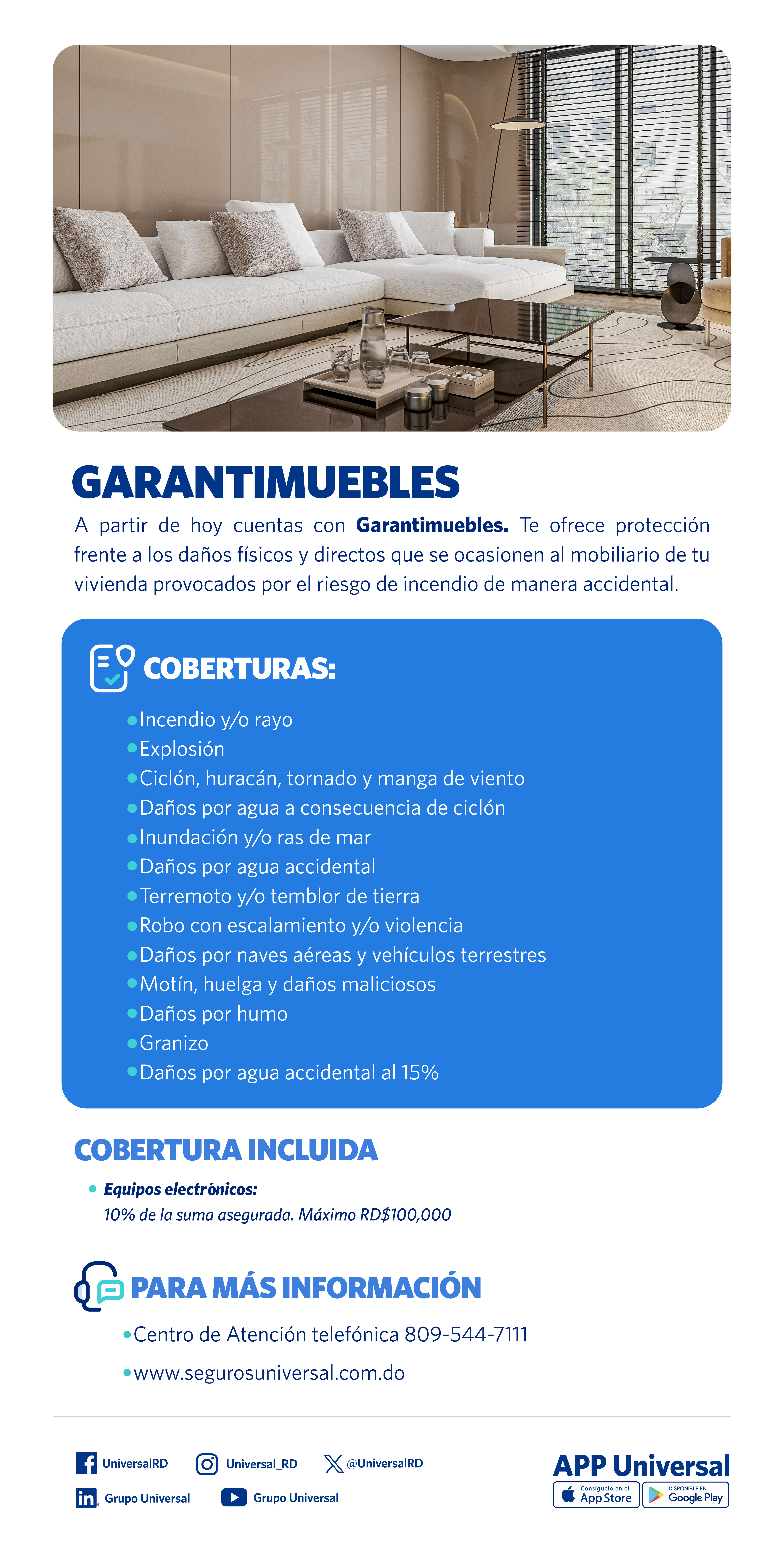 Ofrece la más completa protección frente a los daños físicos y directos al mobiliario de su vivienda, provocados por el riesgo de incendio de manera accidental.
