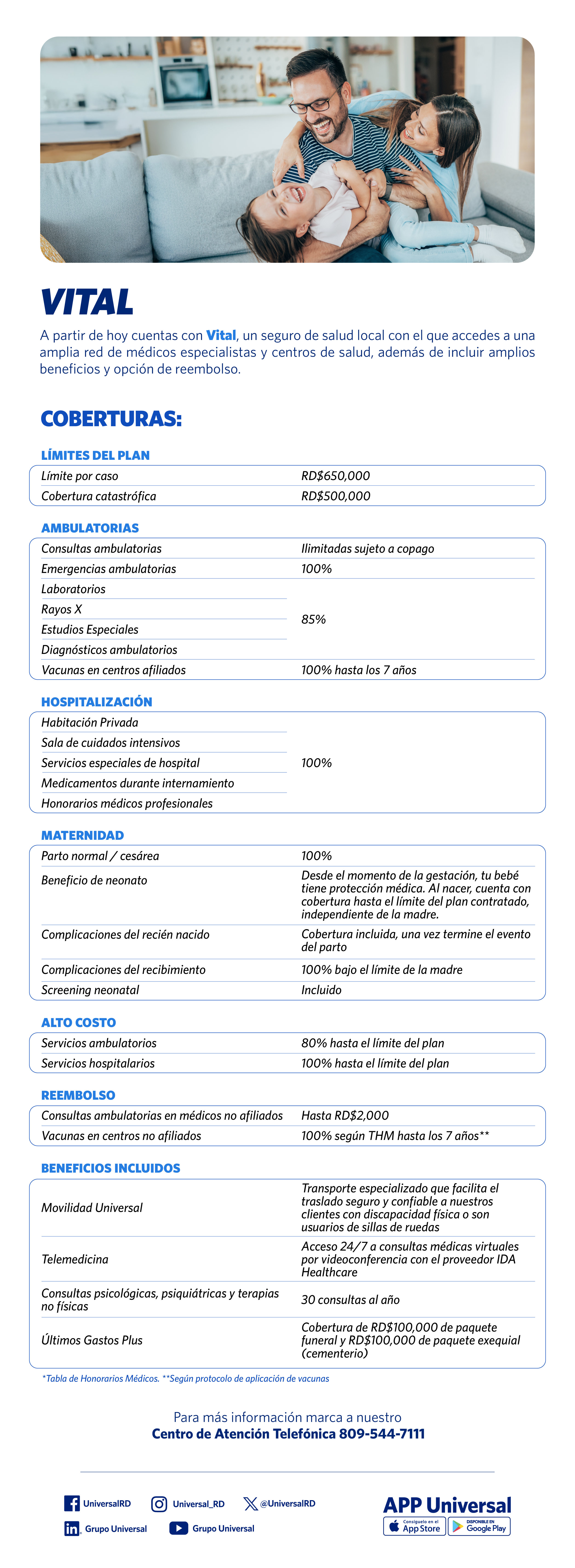 Te brinda una amplia cobertura en procedimientos de alta complejidad, habitación, opción de reembolsos, y otros beneficios.